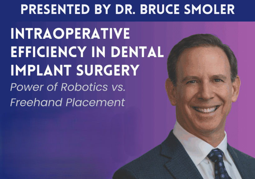 Register for Dr. Bruce Smoler’s upcoming webinar, “Intraoperative Efficiency in Dental Implant Surgery: Power of Robotics vs. Freehand Placement,” on November 18 at 8 PM EST (5 PM PST). Learn how robotics improves surgical accuracy, reduces chair time, and enhances patient outcomes.